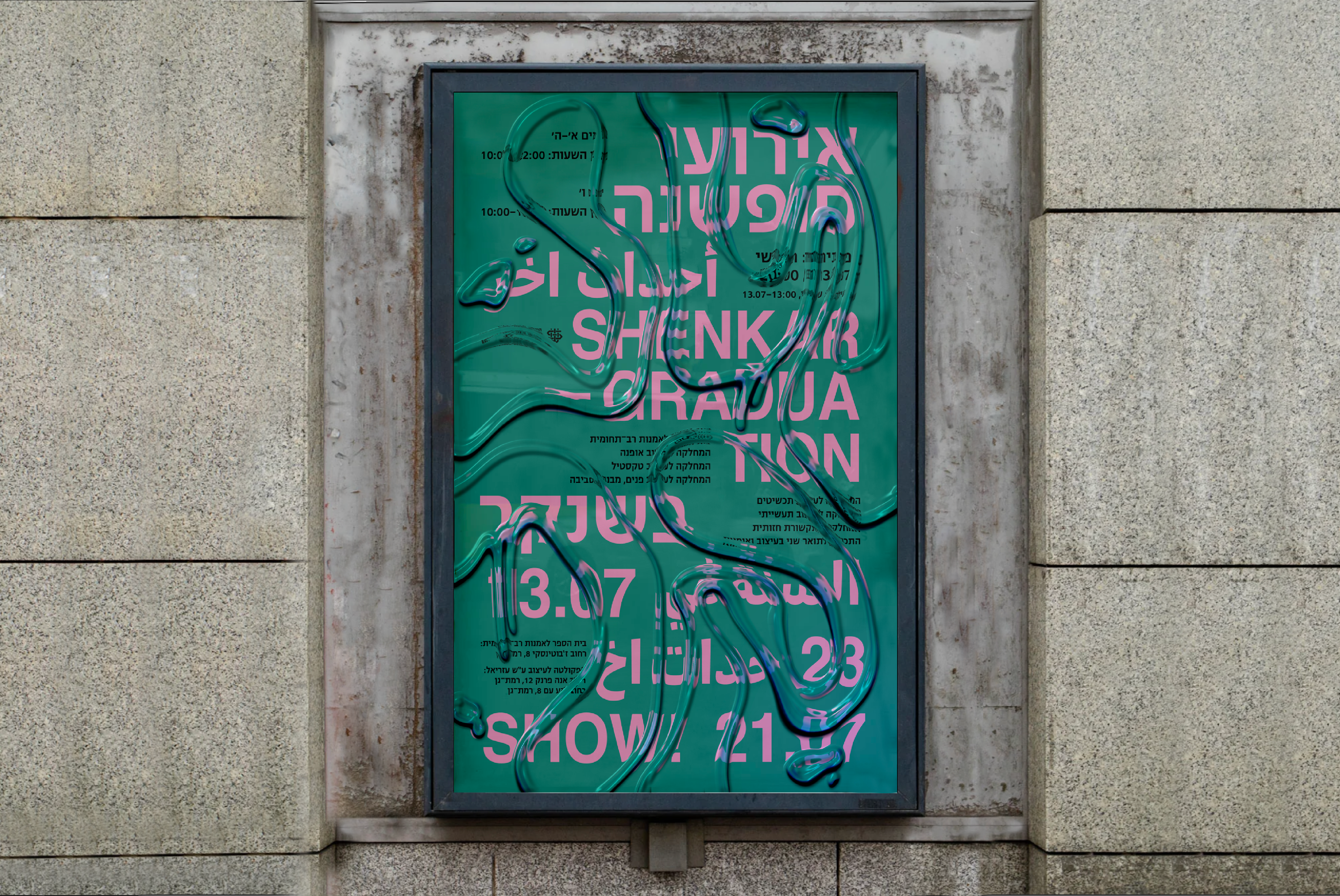 Branding for Shenkar graduation show. the concept that leads the project is the curiosity about what’s ahead. Just like water moves and light changes, our future can go in different and unexpected directions.